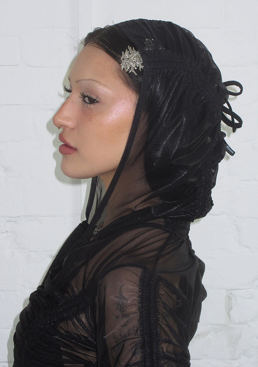 ★ Crafted from glossy black mesh 93% polyester, 7% elastane