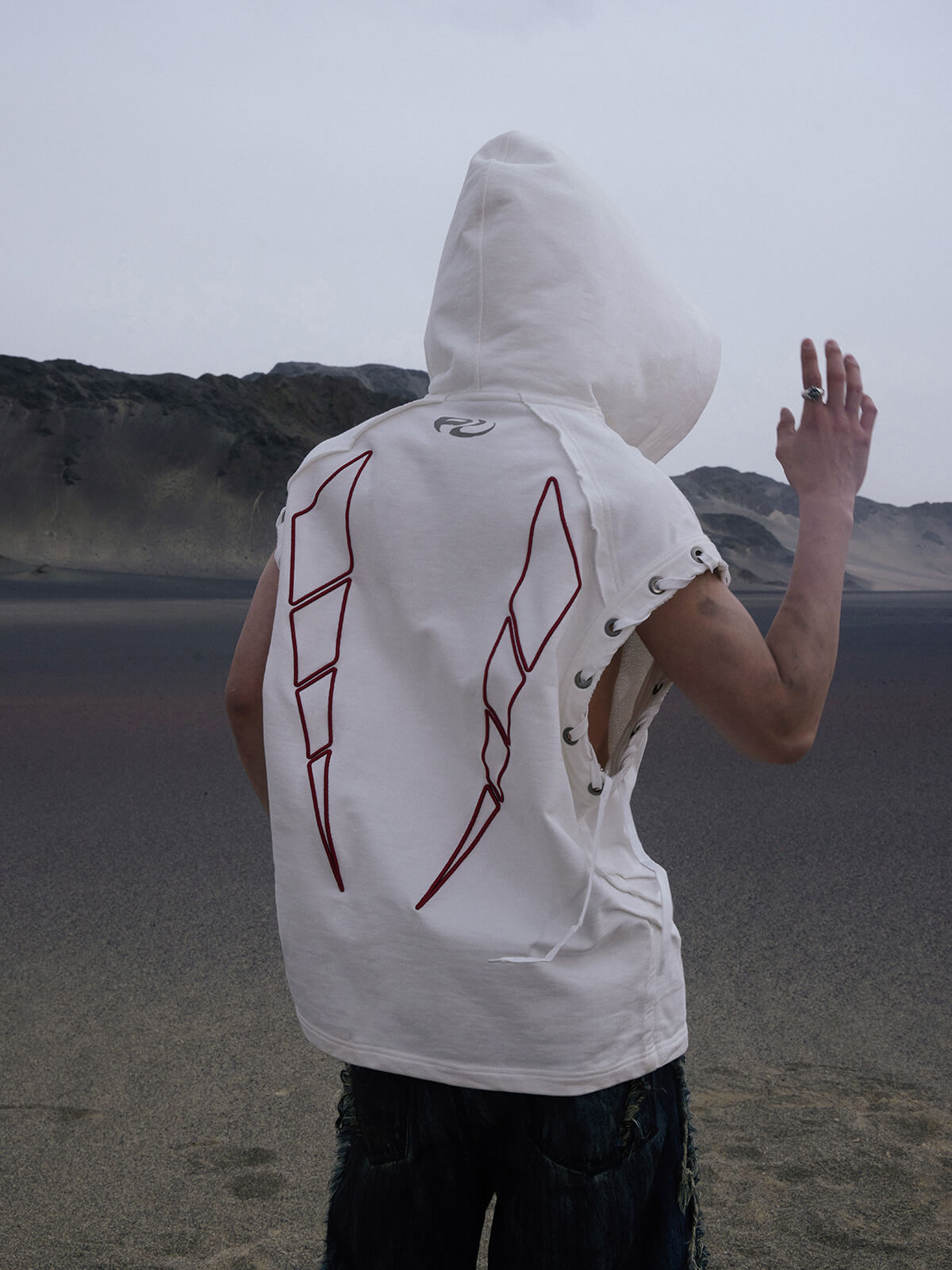 Personsoul Button Collar Hooded Sleeveless Sweatshirt