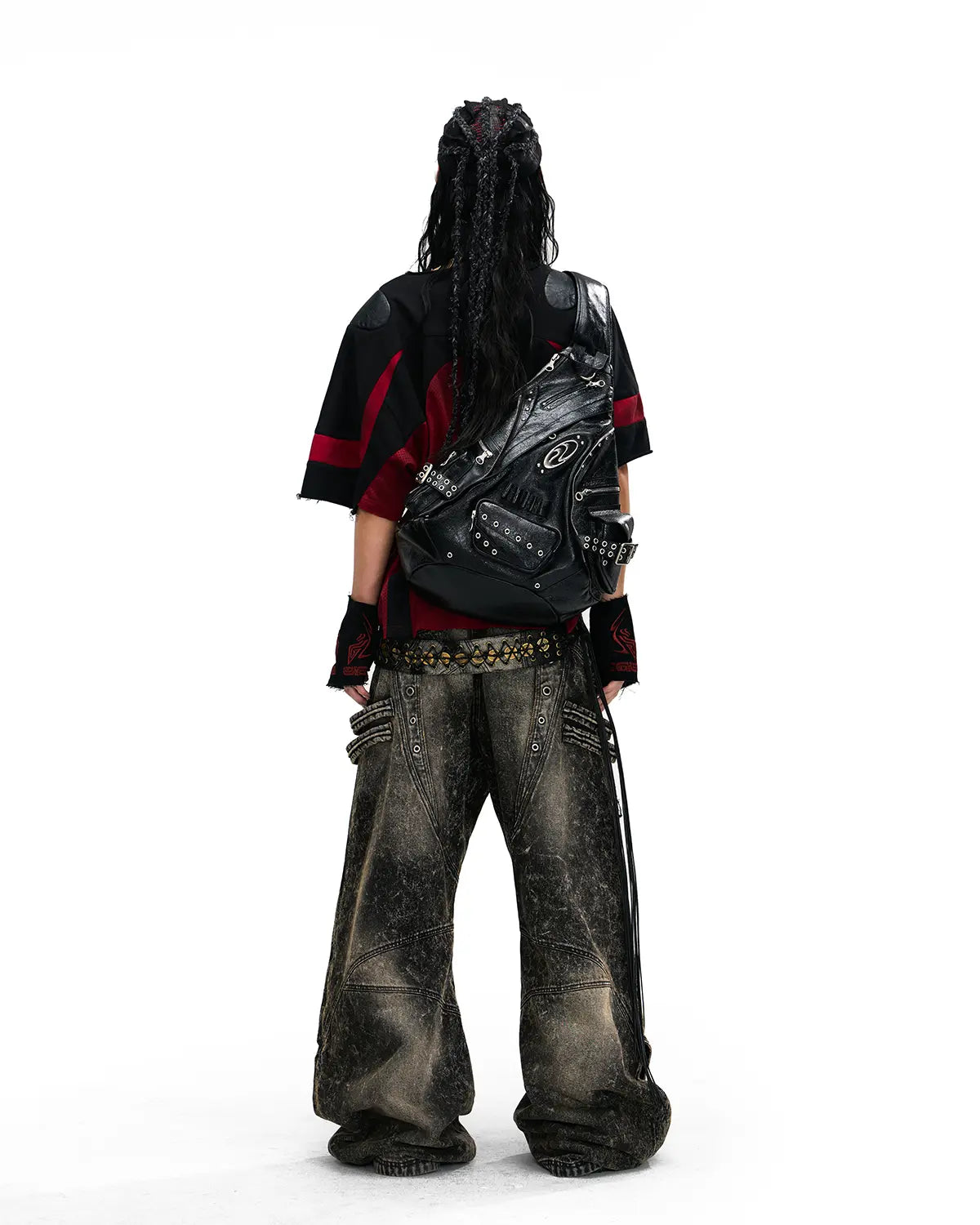 Personsoul Mythical Beast Motif Patchwork T-Shirt Red