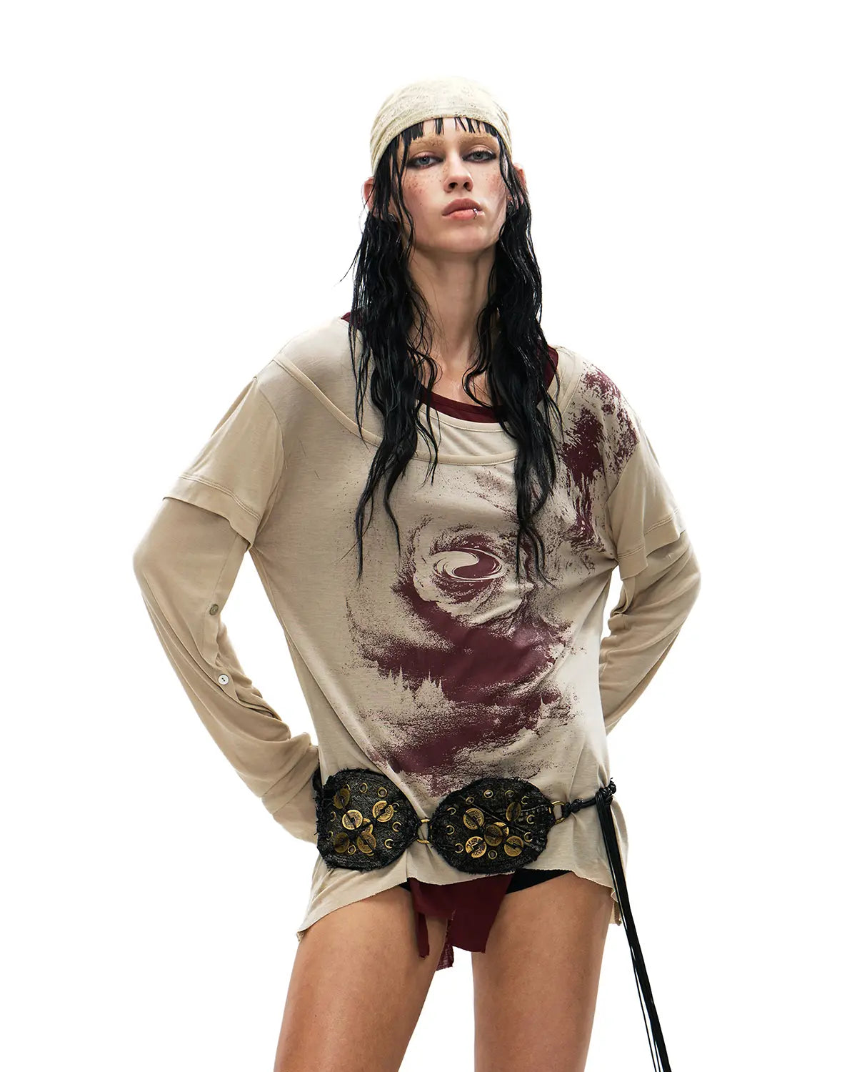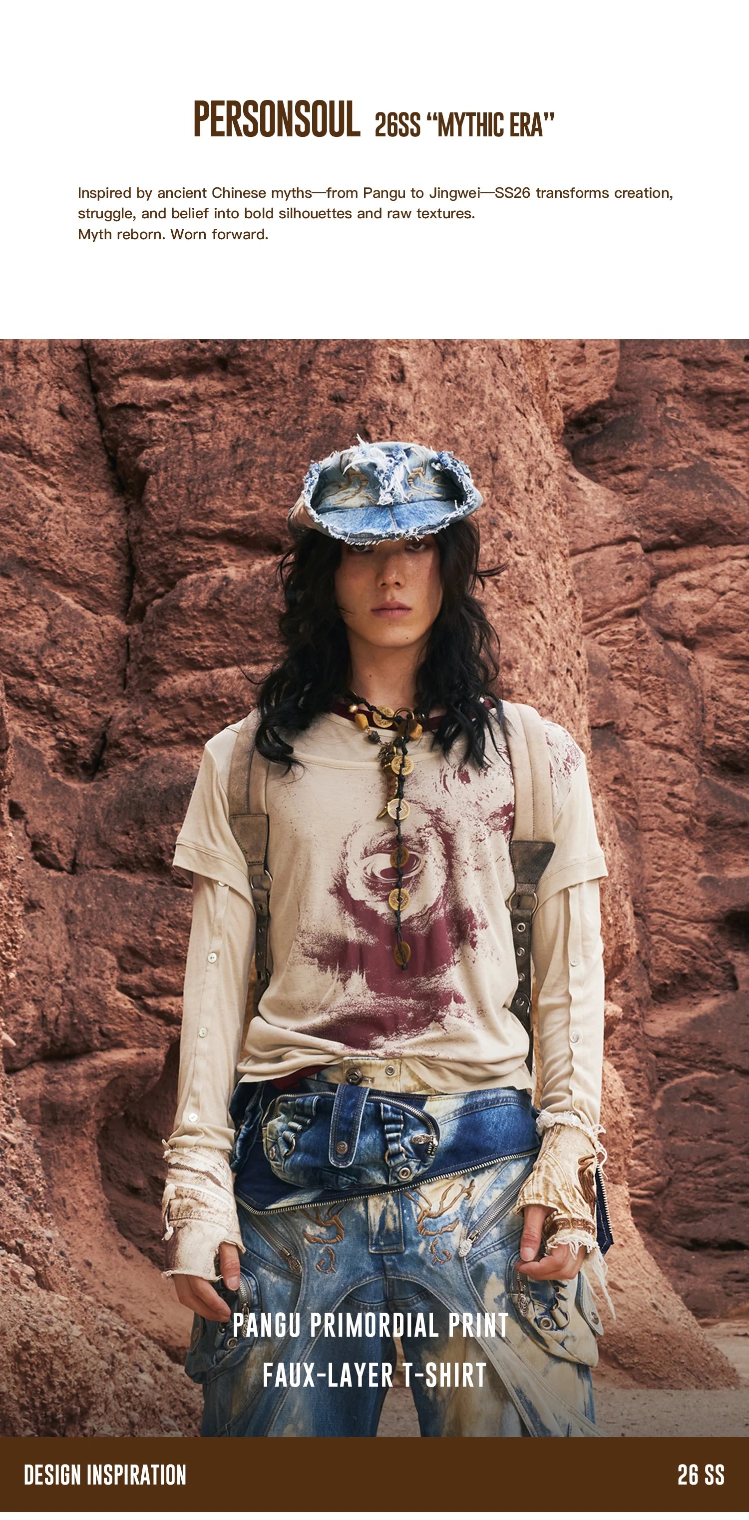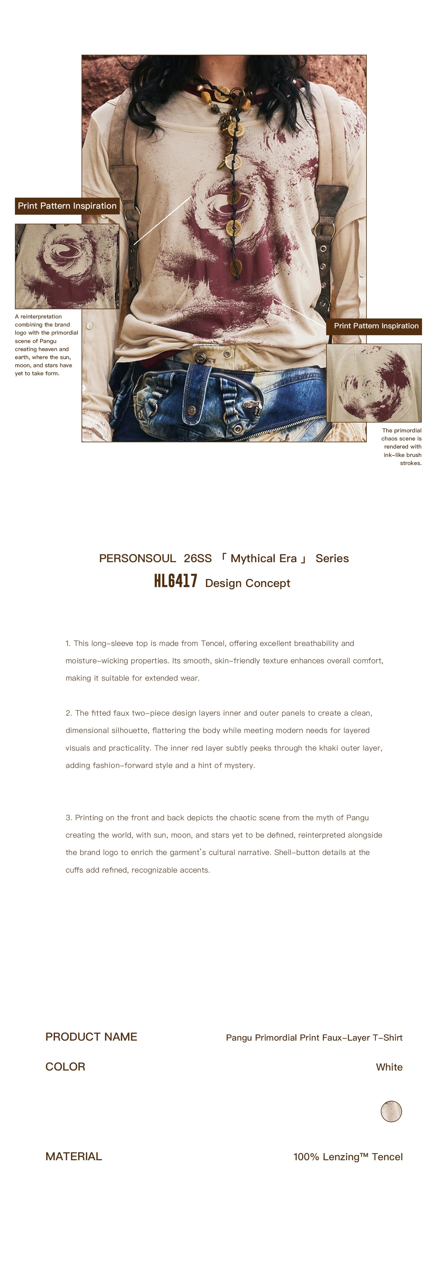 Personsoul Pangu Primordial Print Faux-Layer T-Shirt