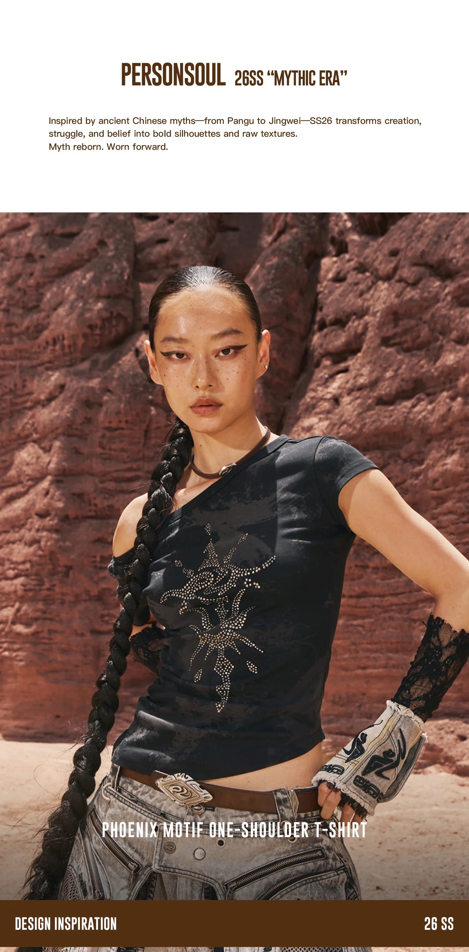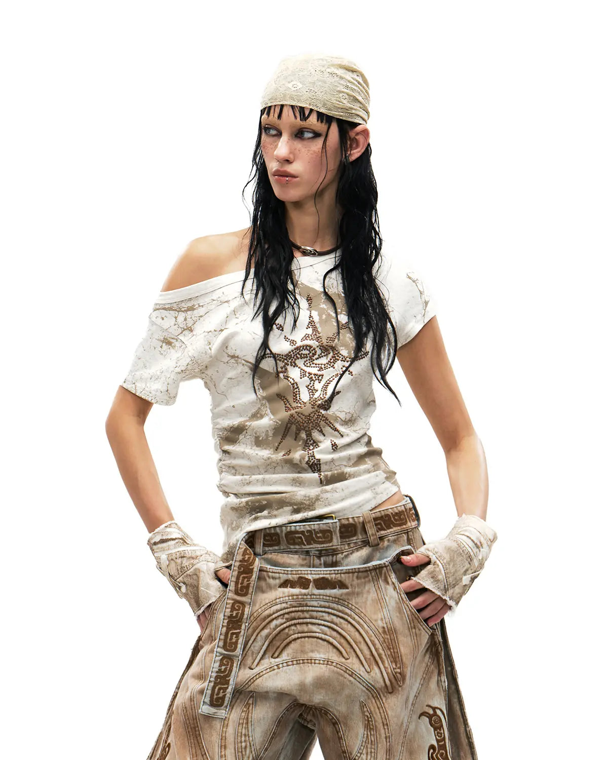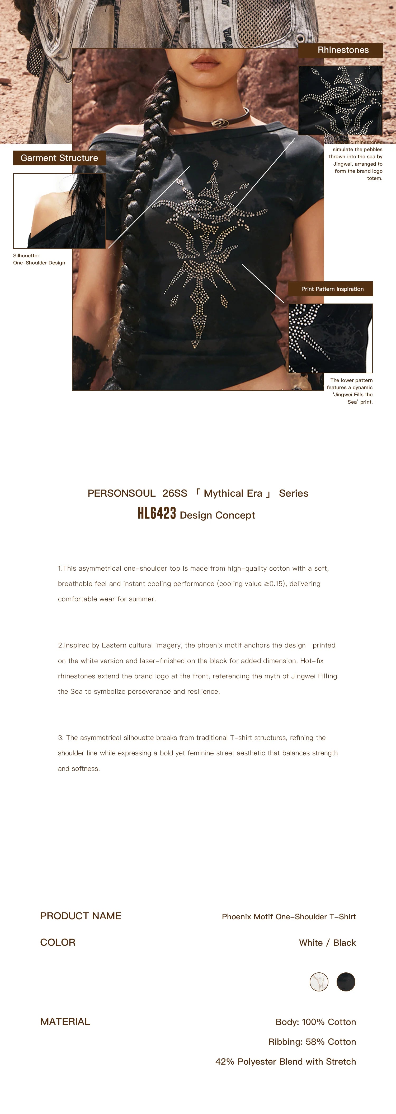 Personsoul Phoenix Motif One-Shoulder T-Shirt White