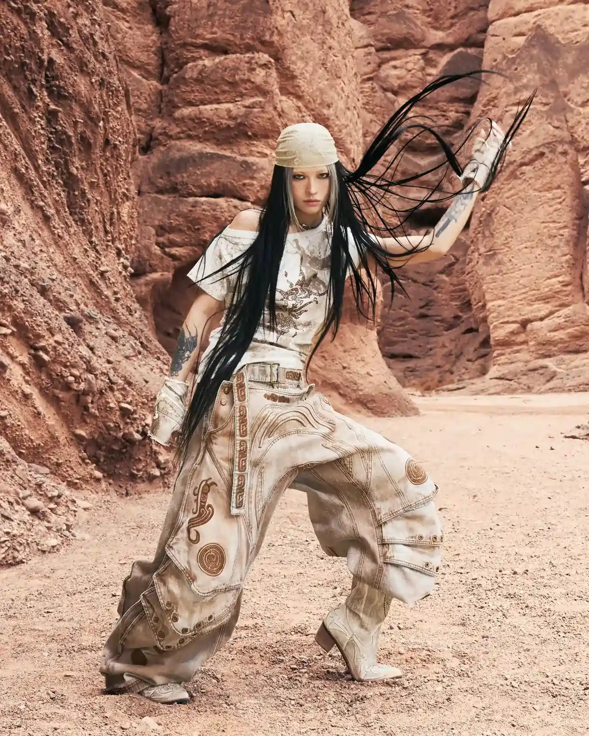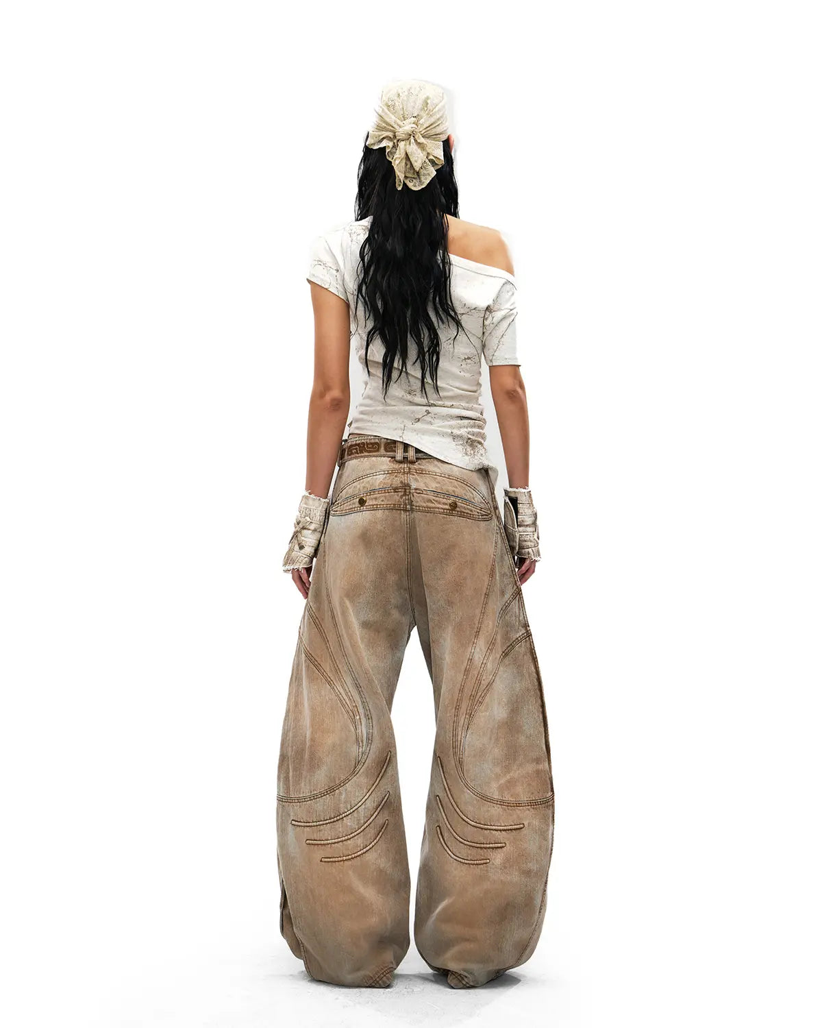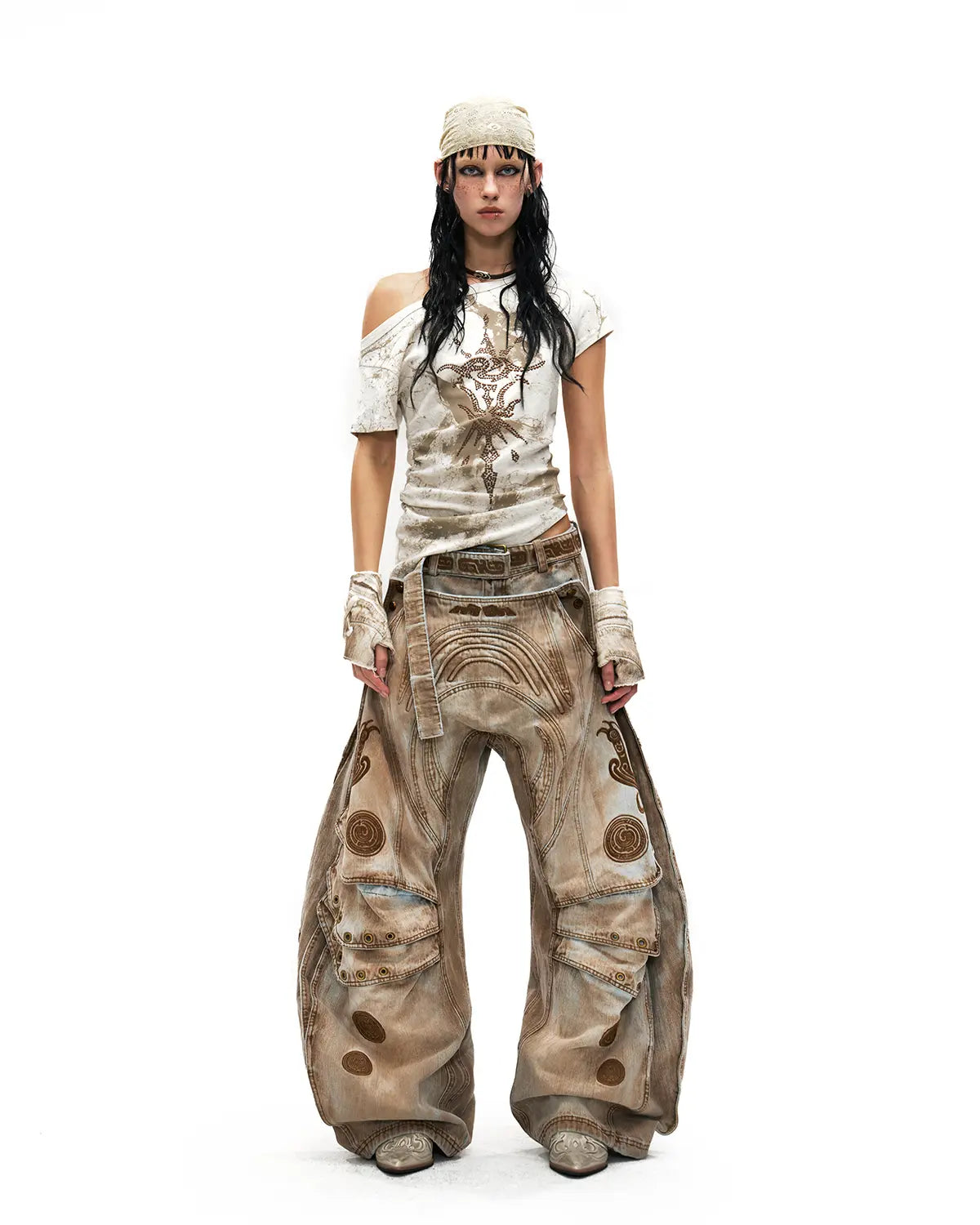 Personsoul Phoenix Motif One-Shoulder T-Shirt White