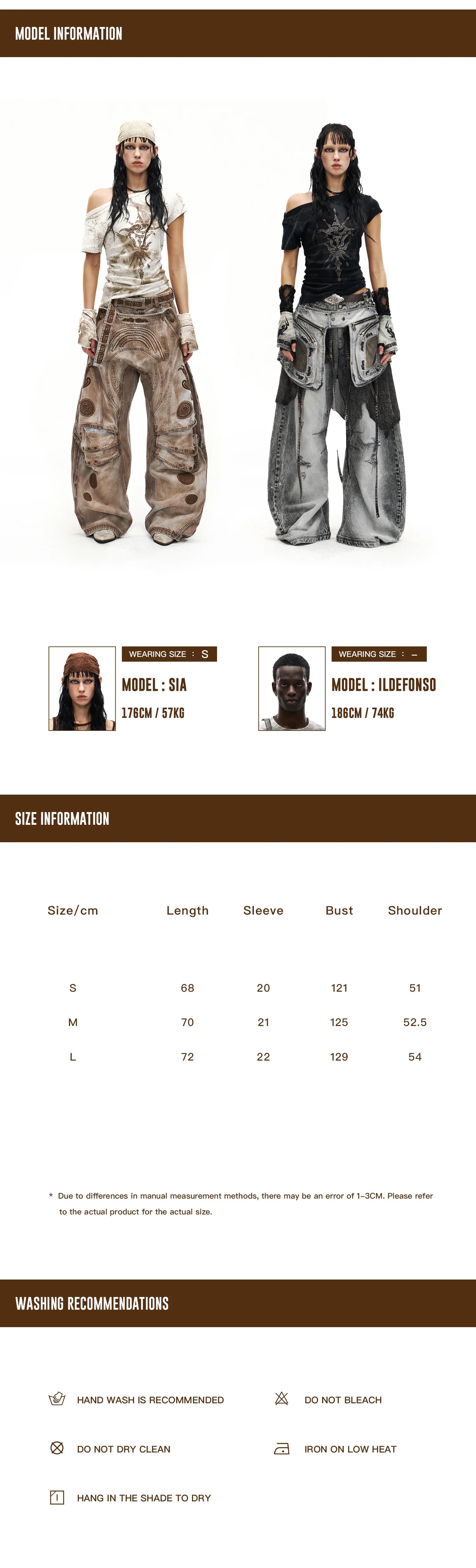 Product Info & Size Chart Details
