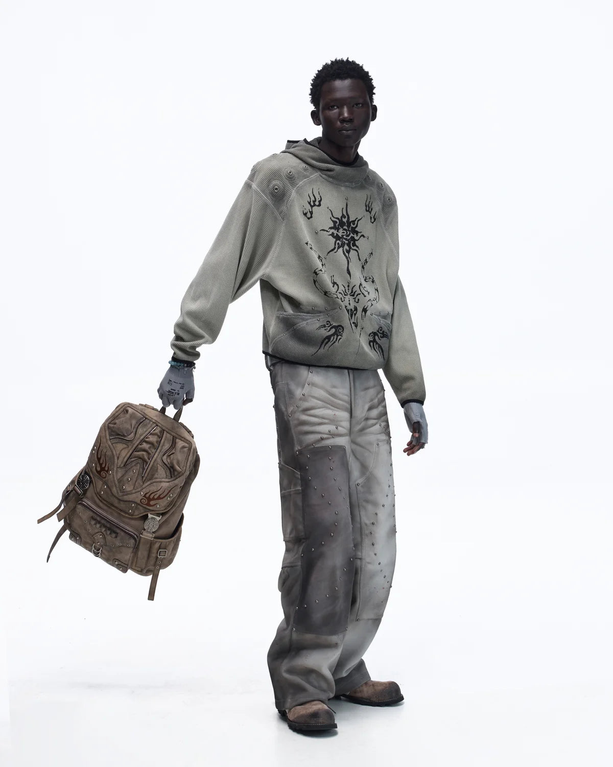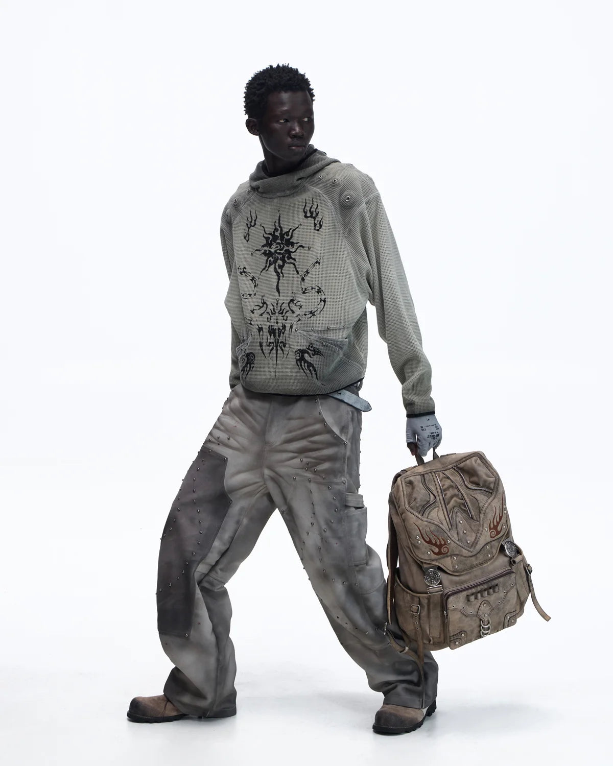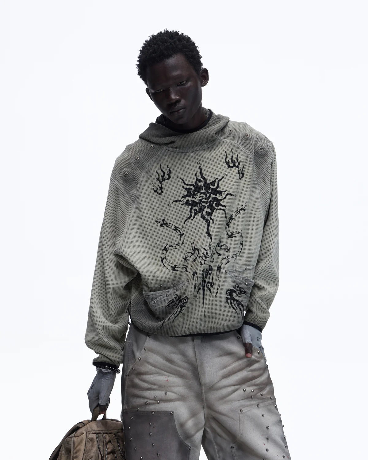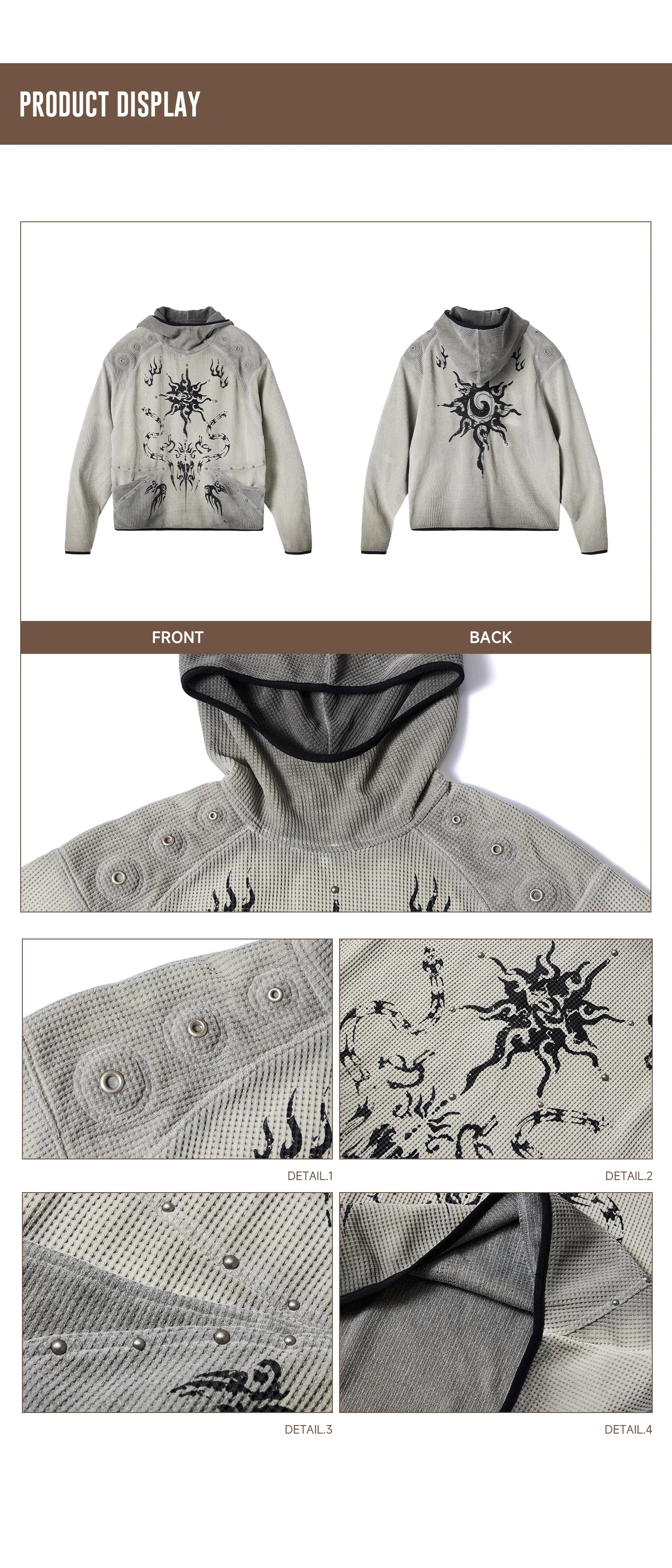 Personsoul Solar Totem Textured Plaid Hooded Sweatshirt