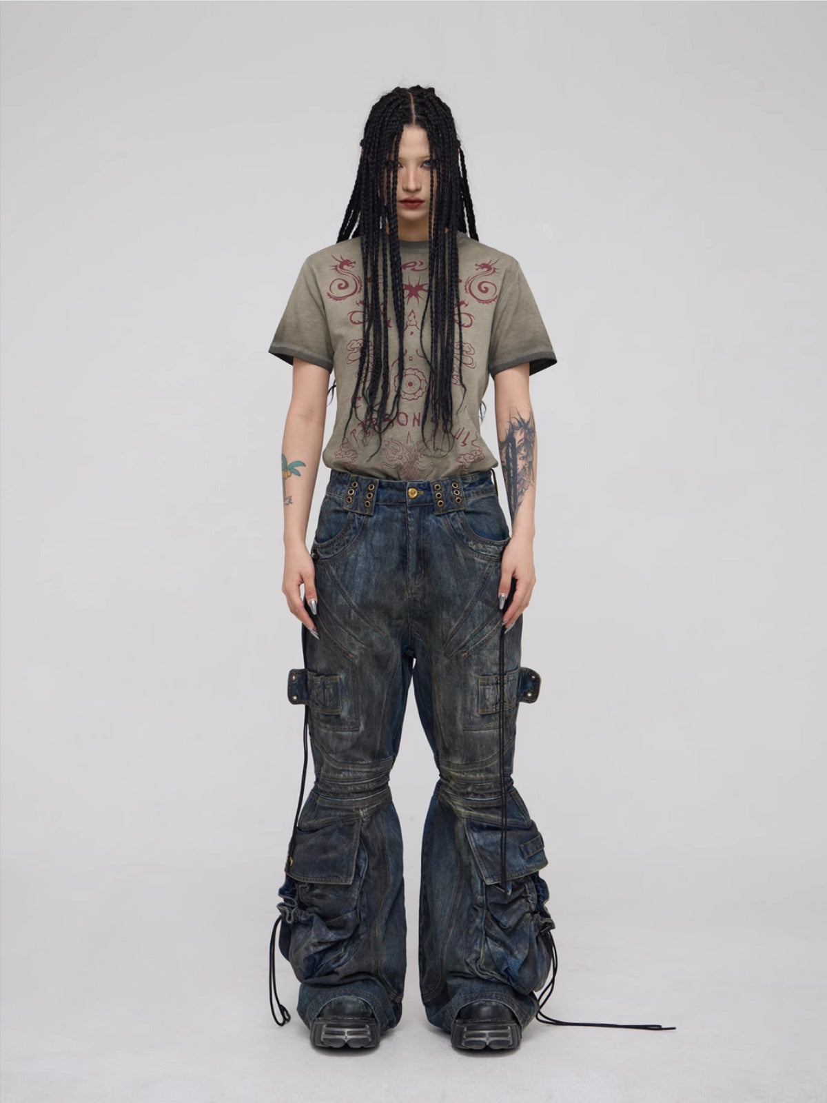 • Female model is 166cm/5′4, weight 50kg/110lbs, waist 62cm/24in, chest 85cm/33in, wearing size S.