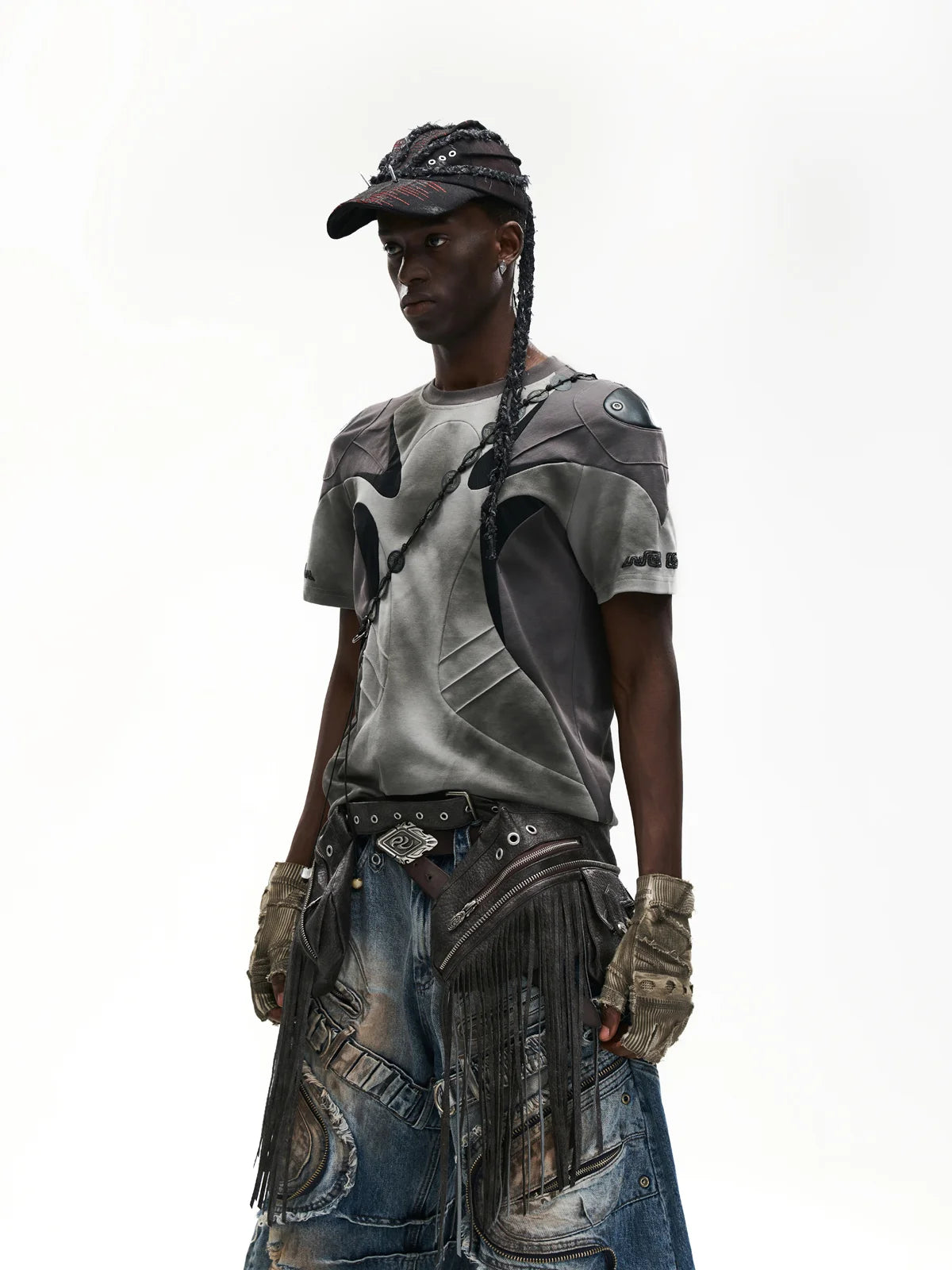 Spliced Cooling Slim T-Shirt with Embroidered Shoulder Details